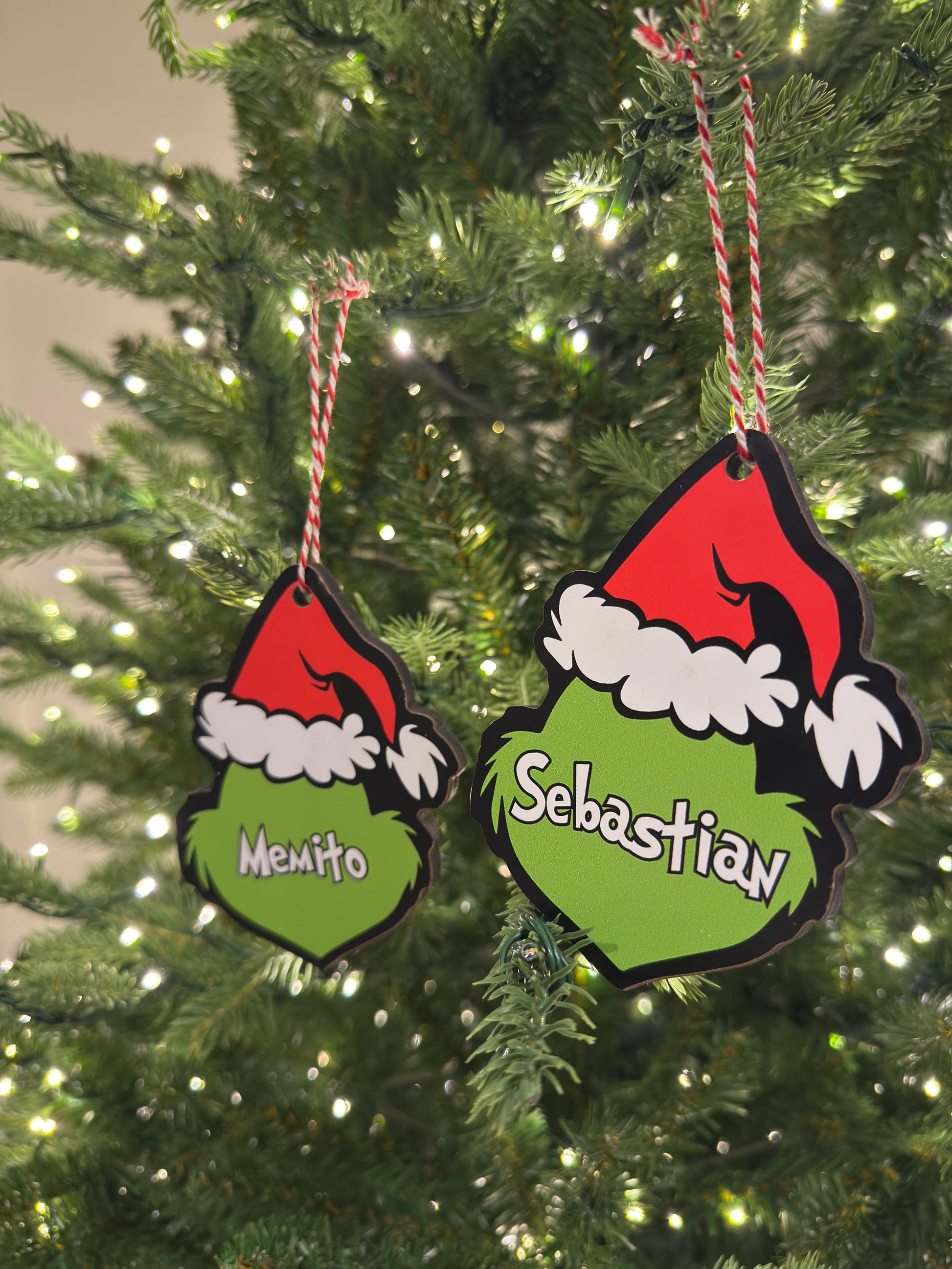 Bring some festive fun to your tree with our custom Grinch face ornaments. Each ornament is laser cut and printed on high quality wood, measuring approximately 4 inches tall, the perfect size to stand out on any Christmas tree.