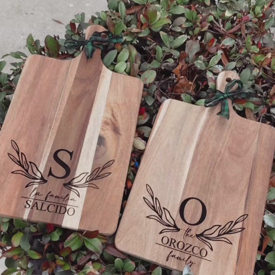 Add a touch of love and elegance to any kitchen with our beautifully engraved cutting boards. Each board is customized with your chosen last name, making it a meaningful keepsake that’s both stylish and functional.